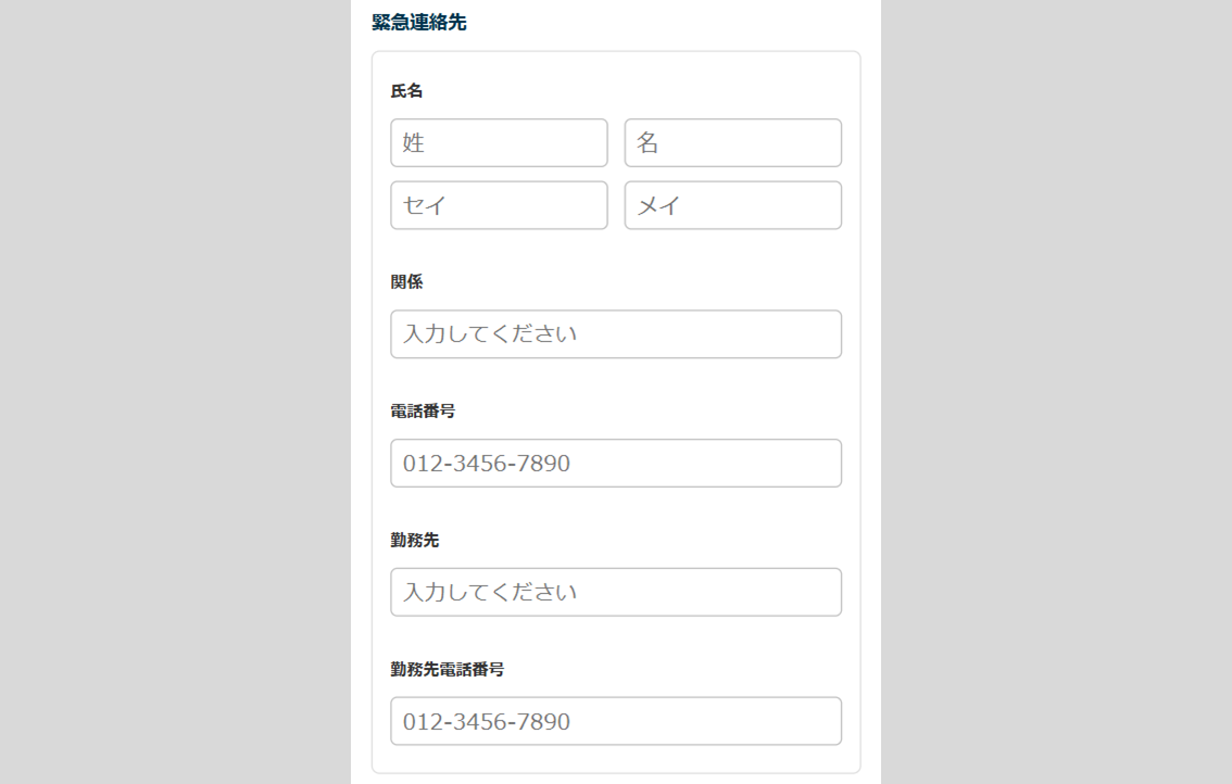 「本人情報」以外はグレーアウトしていますが、本人情報の入力を終えると、入力した内容に応じて必要な情報がクリックできるようになります。