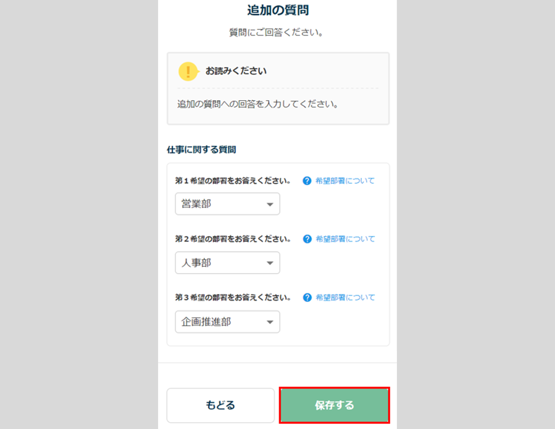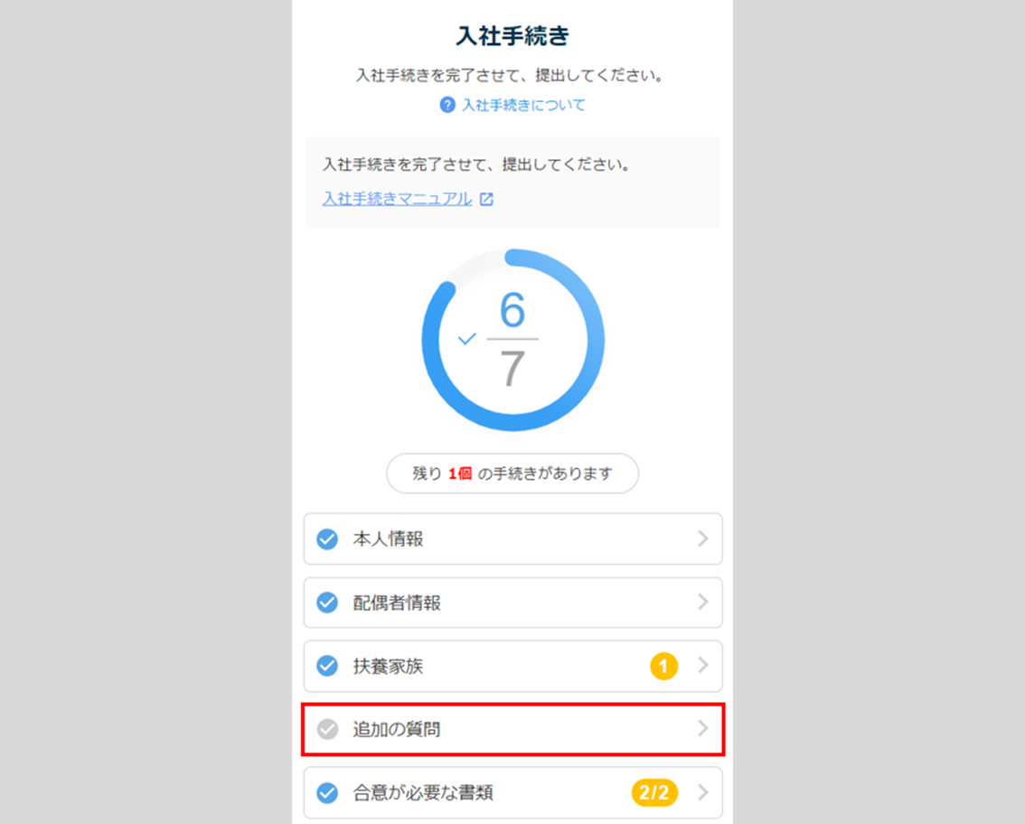 ※勤務先の管理者側の設定により、手続き(追加の質問)の有無、名称は異なります。