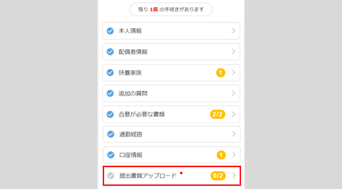 ※管理者側の設定により提出書類の種類が変わる場合や、画像提出が不要の場合があります。