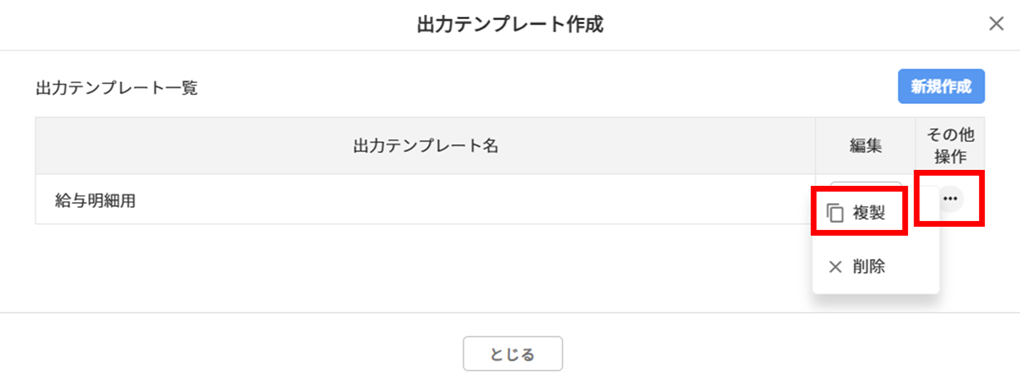 【補足】出力テンプレートの編集・削除