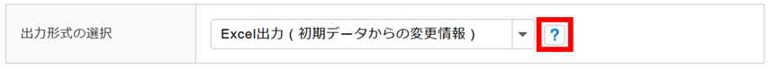 「出力形式の選択」に「 Excel出力 ( 初期データからの変更情報 ) 」または「CSV出力 ( 初期データからの変更情報 )」を選択した時に表示される[(はてなマーク)]をクリックすると、「変更情報の記載について」を確認できます。