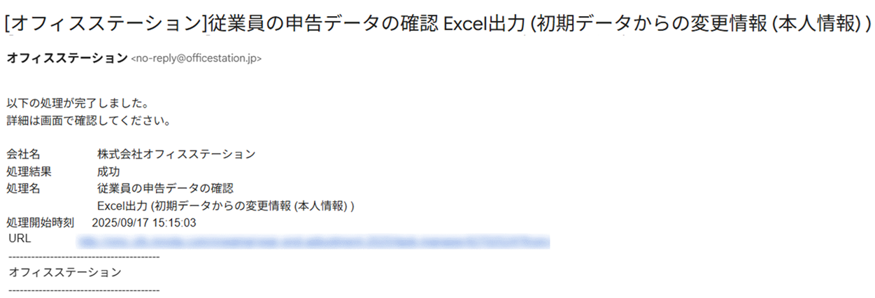 ・メールの件名 : 従業員の申告データの確認 Excel出力 (初期データからの変更情報 (本人情報) )