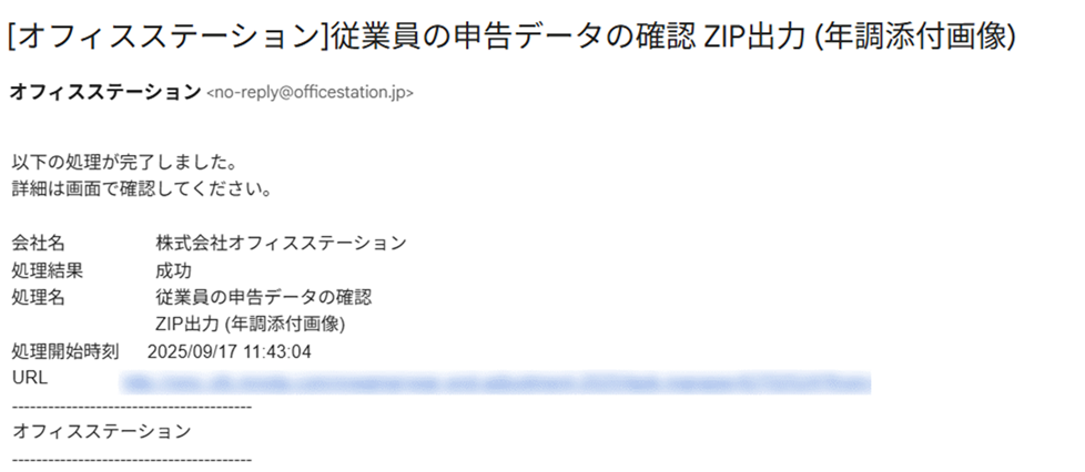 ・メールの件名 : 従業員の申告データの確認 ZIP出力 (年調添付画像)