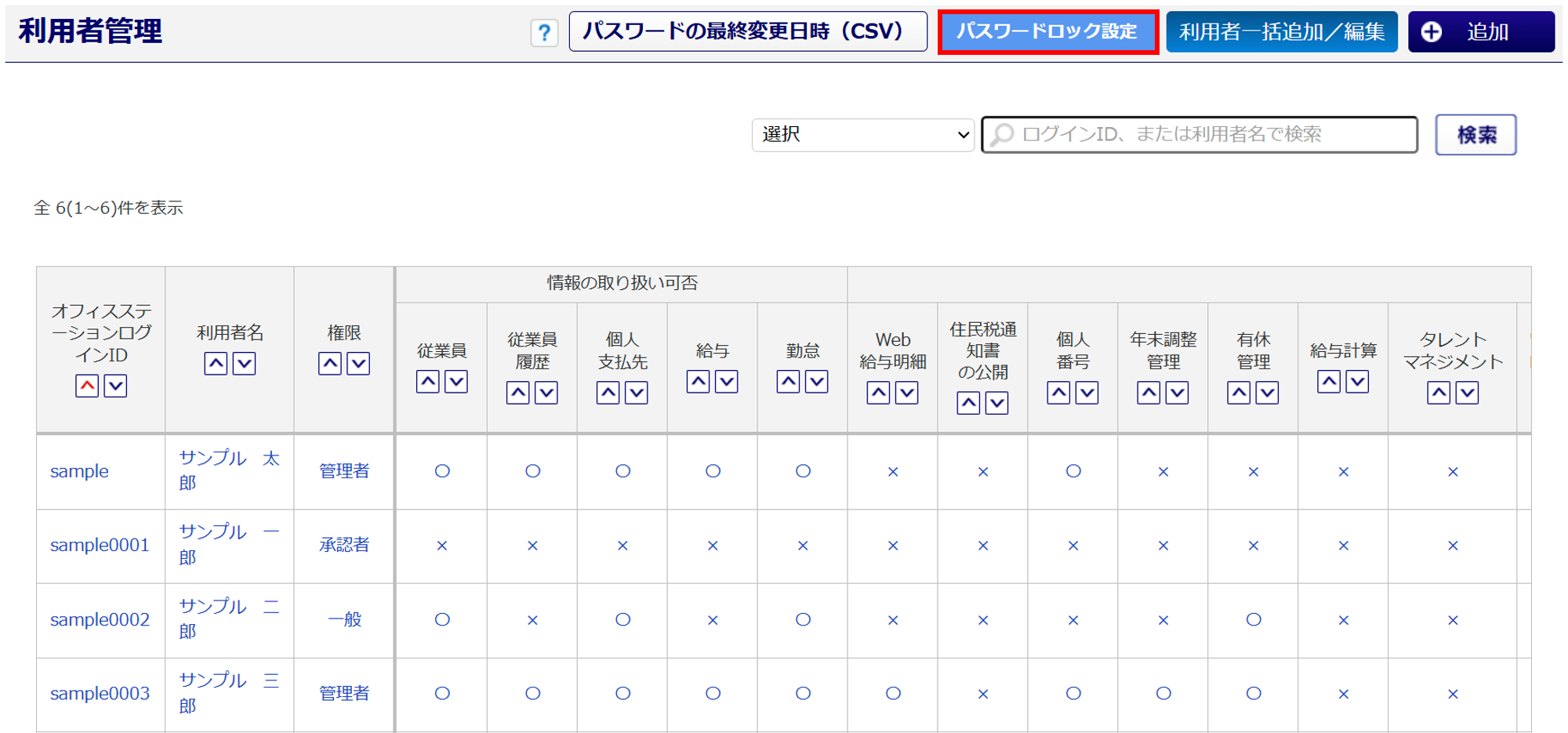 「パスワードロック設定」をおこなうには、「管理者」権限が必要です。
