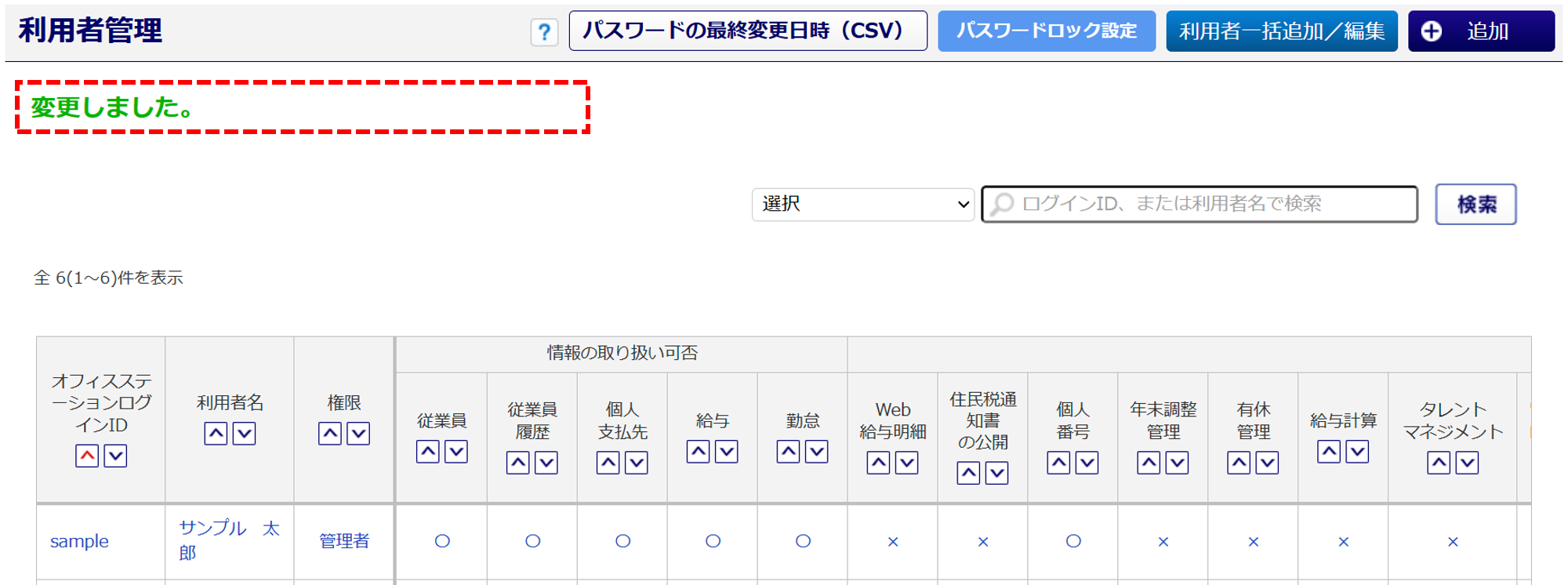 画面上部に「変更しました。」と表示されたら、設定完了です。