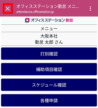 ショートカット作成後、Myレコーダー画面右上の[≡]内で「タイムカード」をタップすると以下の画面が表示されます。この時、画面左上の[X]をタップするとMyレコーダー画面に戻ることができます。