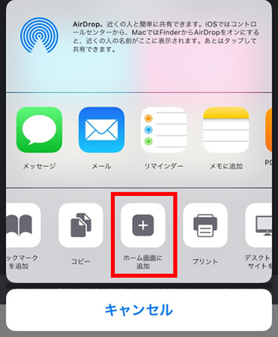 3.「ホーム画面に追加」を選択します。