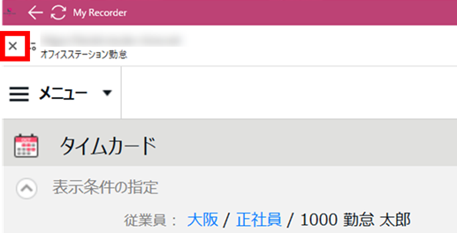 ショートカット作成後、Myレコーダー画面右上の[≡]内で「タイムカード」をタップすると以下の画面が表示されます。この時、画面左上の[X]をタップするとMyレコーダー画面に戻ることができます。