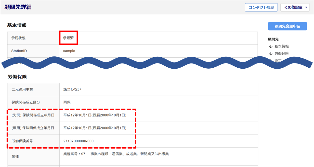 会員社労士側から顧問先申請をおこなった顧問先情報については、承認時に、以下の項目が事務局側で