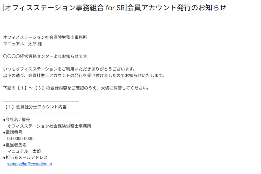 - 件名 : [オフィスステーション事務組合 for SR]会員アカウント発行のお知らせ