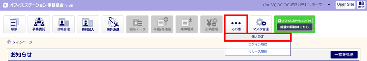 [その他]をクリックし、表示されるメニュー内の[個人設定]をクリックします。