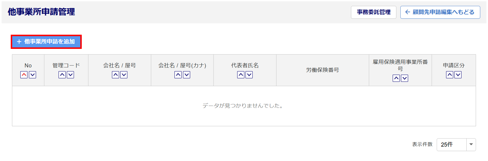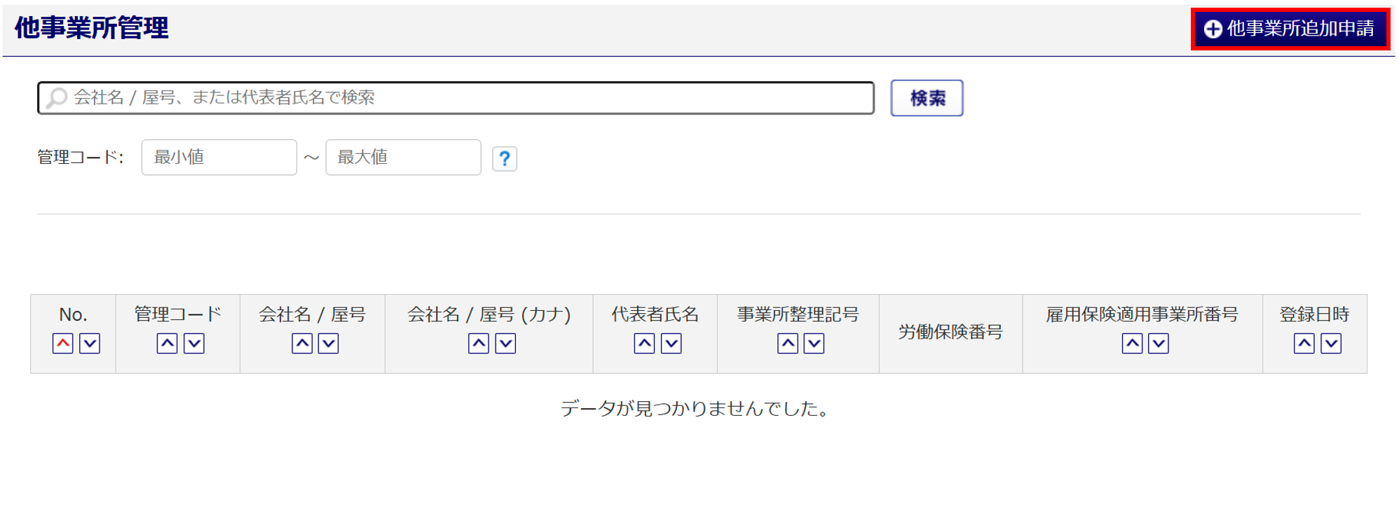 顧問先(事業所)を登録していない場合は、他事業所情報を登録することができません。