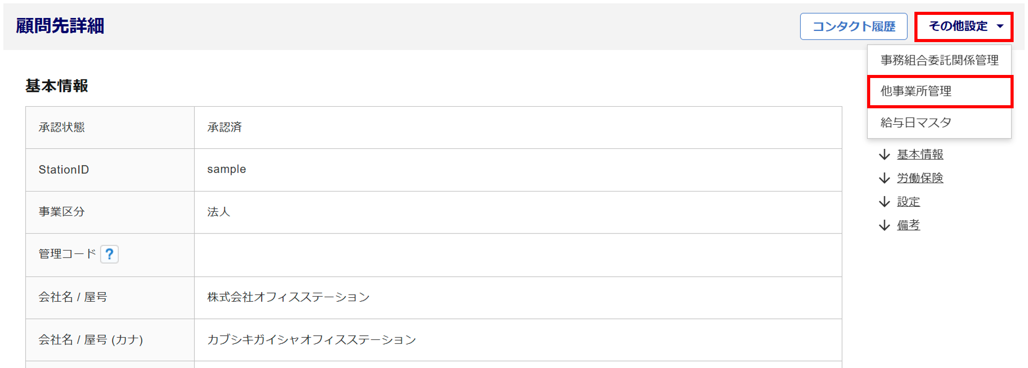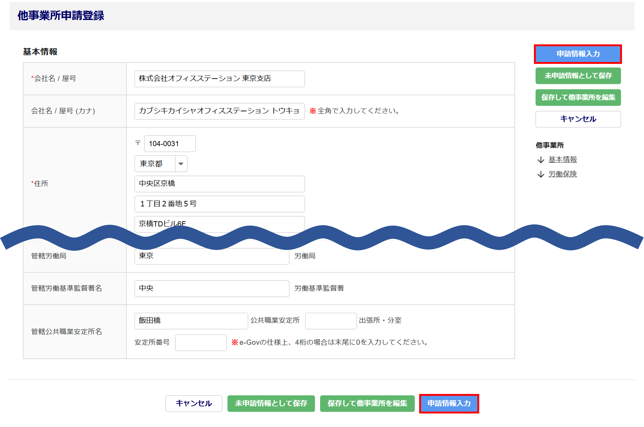 他事業所情報の入力