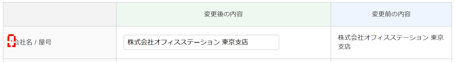 「変更後の内容」列(赤枠部分)に、変更が必要な情報を入力してください。
