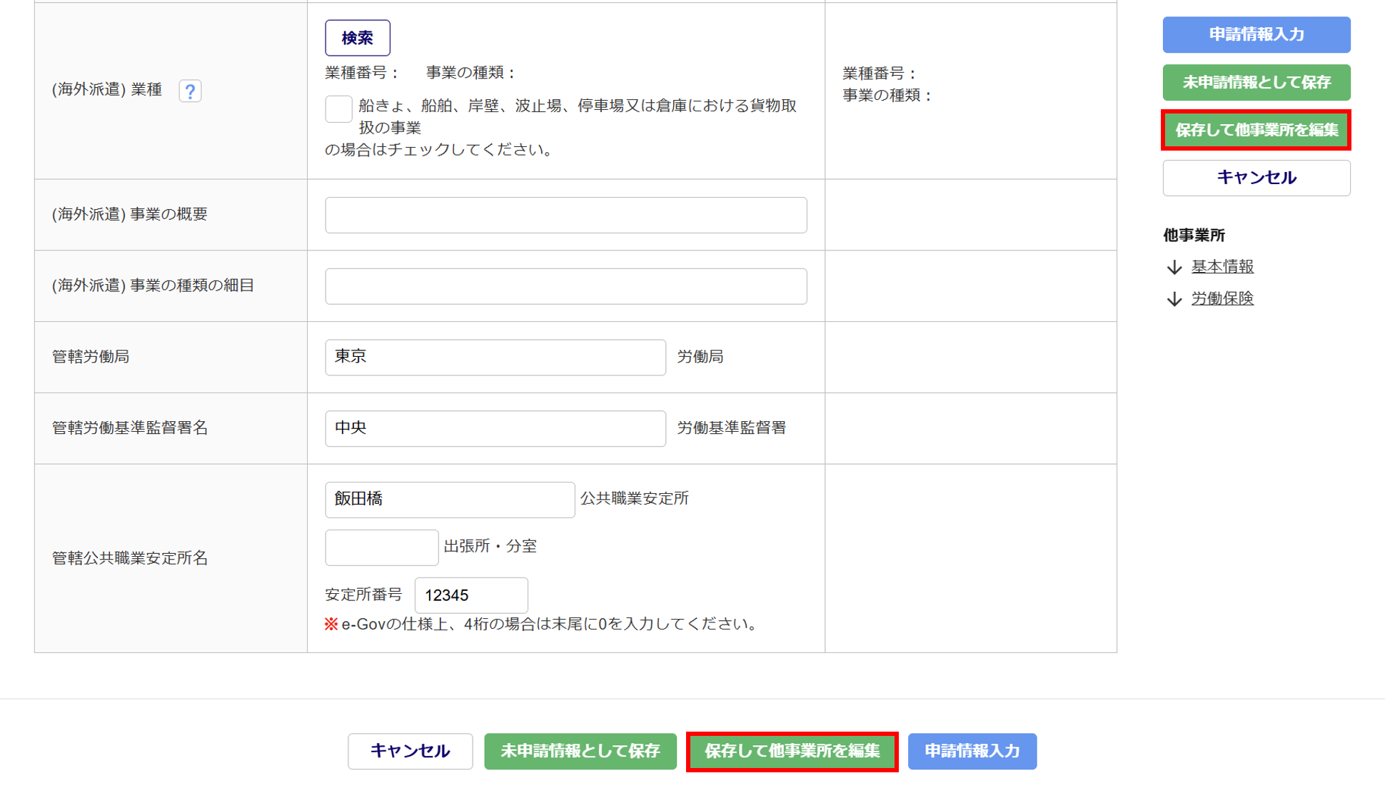 画面最下部または画面右側にある[保存して他事業所を編集]をクリックします。