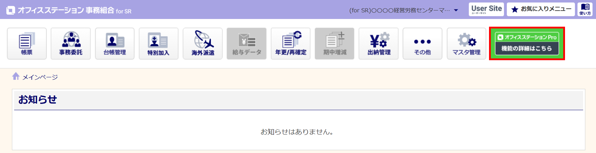 [オフィスステーション Pro 機能の詳細はこちら]をクリックします。