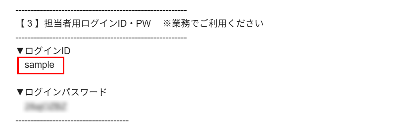 変更後のパスワードと、メールに記載の「【 4 】担当者用ログインID・PW」内の「▼ログインID」を使用することでシステムへログインできます。