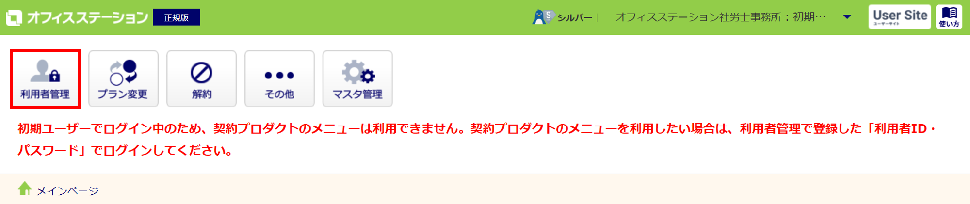 ログイン後、[利用者管理]をクリックします。