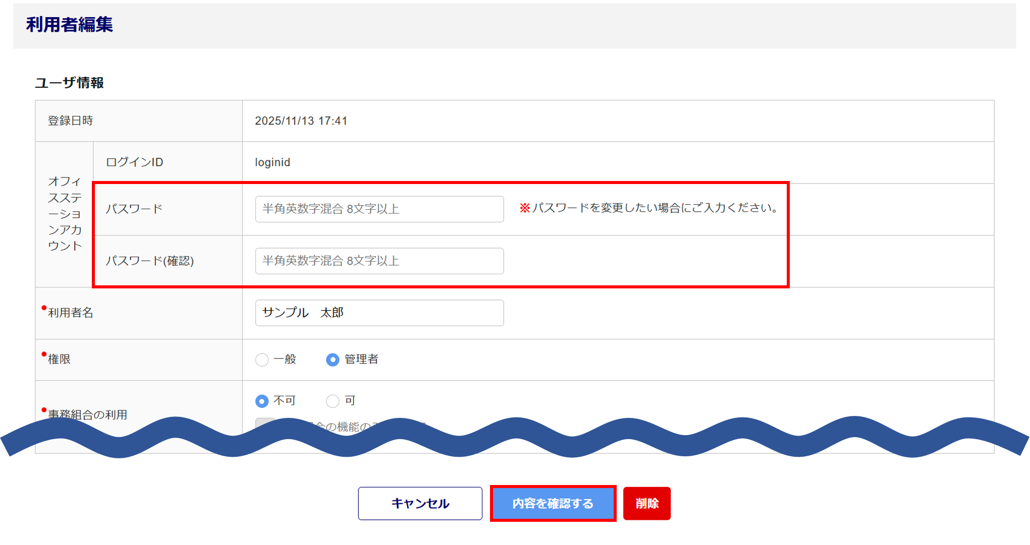 「利用者編集」画面が表示されます。