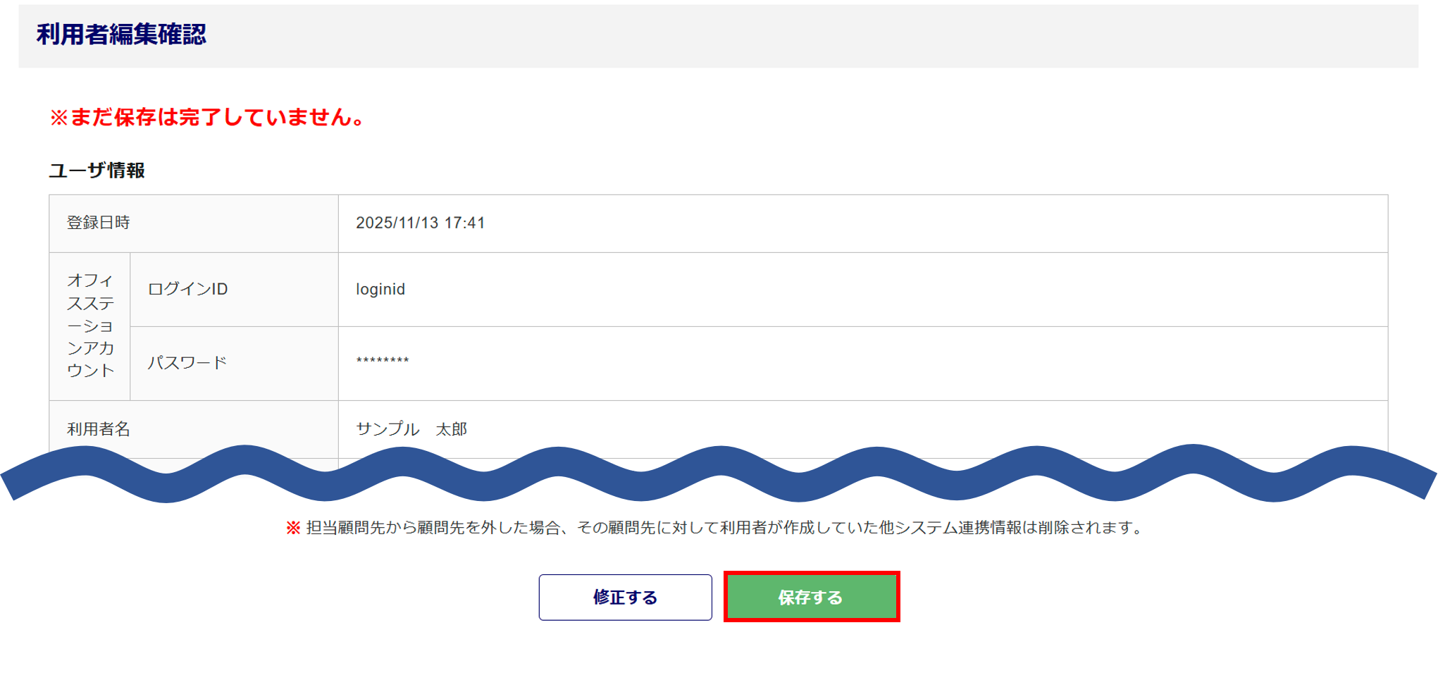 内容を確認し、問題がなければ、画面最下部の[保存する]をクリックします。