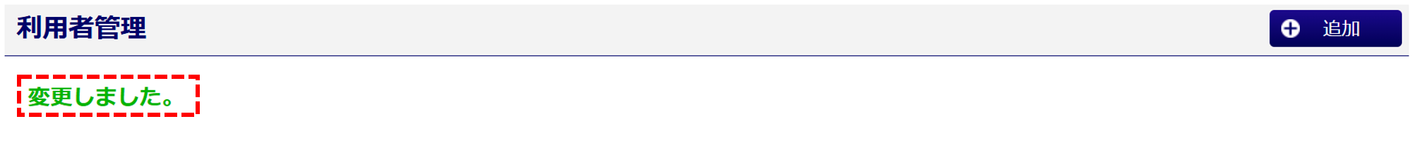 「利用者管理」画面上部に「変更しました。」と表示されたら、パスワードの変更は完了です。