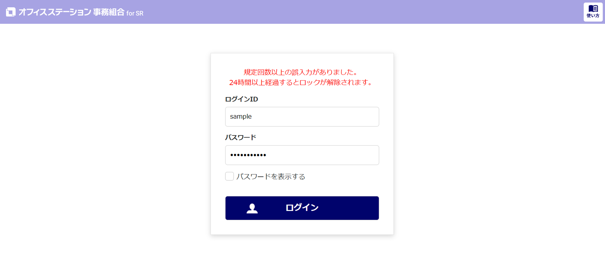 ※エラー:規定回数以上の誤入力がありました。24時間以上経過するとロックが解除されます。