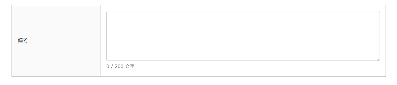 「備考」欄では、任意でメモ等にご活用ください。※200文字まで