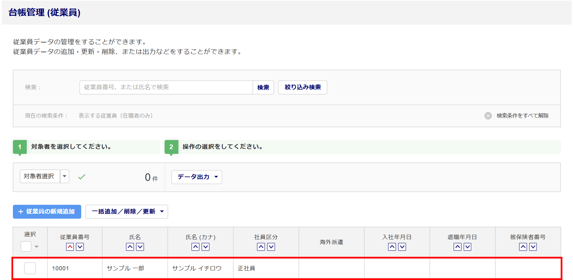 従業員情報の一括編集・削除方法については、以下の関連記事をご参照ください。