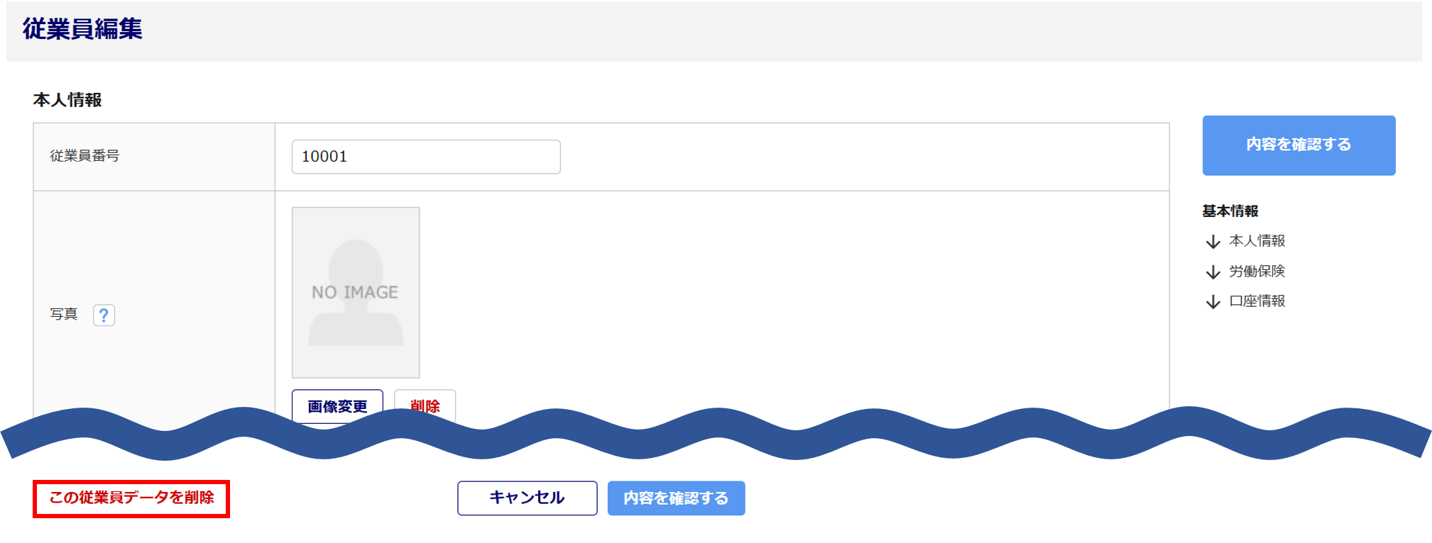 従業員情報を削除すると、従業員台帳から完全にデータが削除されます。