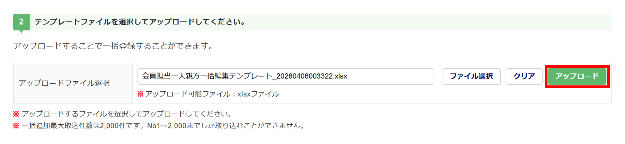 ※テンプレートファイル名は、「会員担当一人親方一括編集テンプレート_YYYYMMDDHHMMSS.xlsx」です。