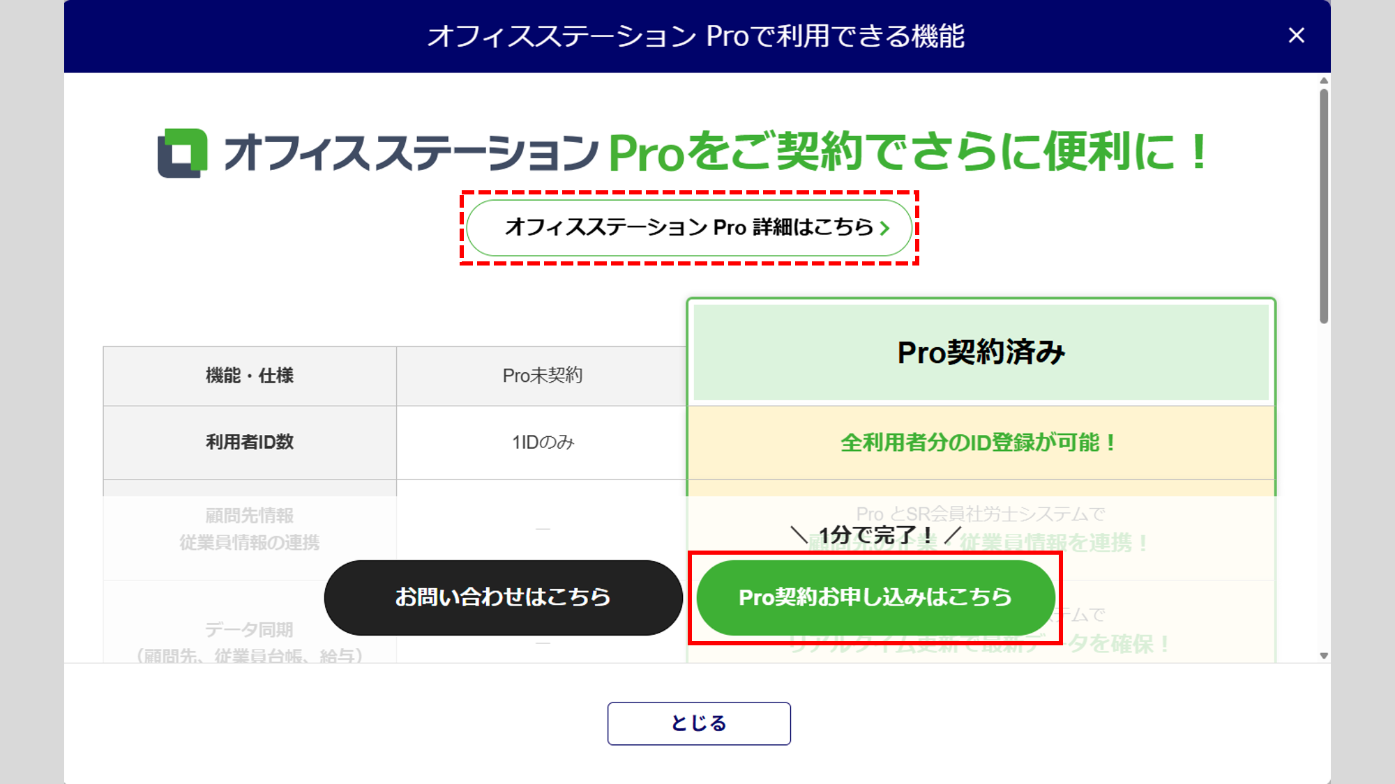 [オフィスステーション Pro 機能の詳細はこちら]をクリックします。