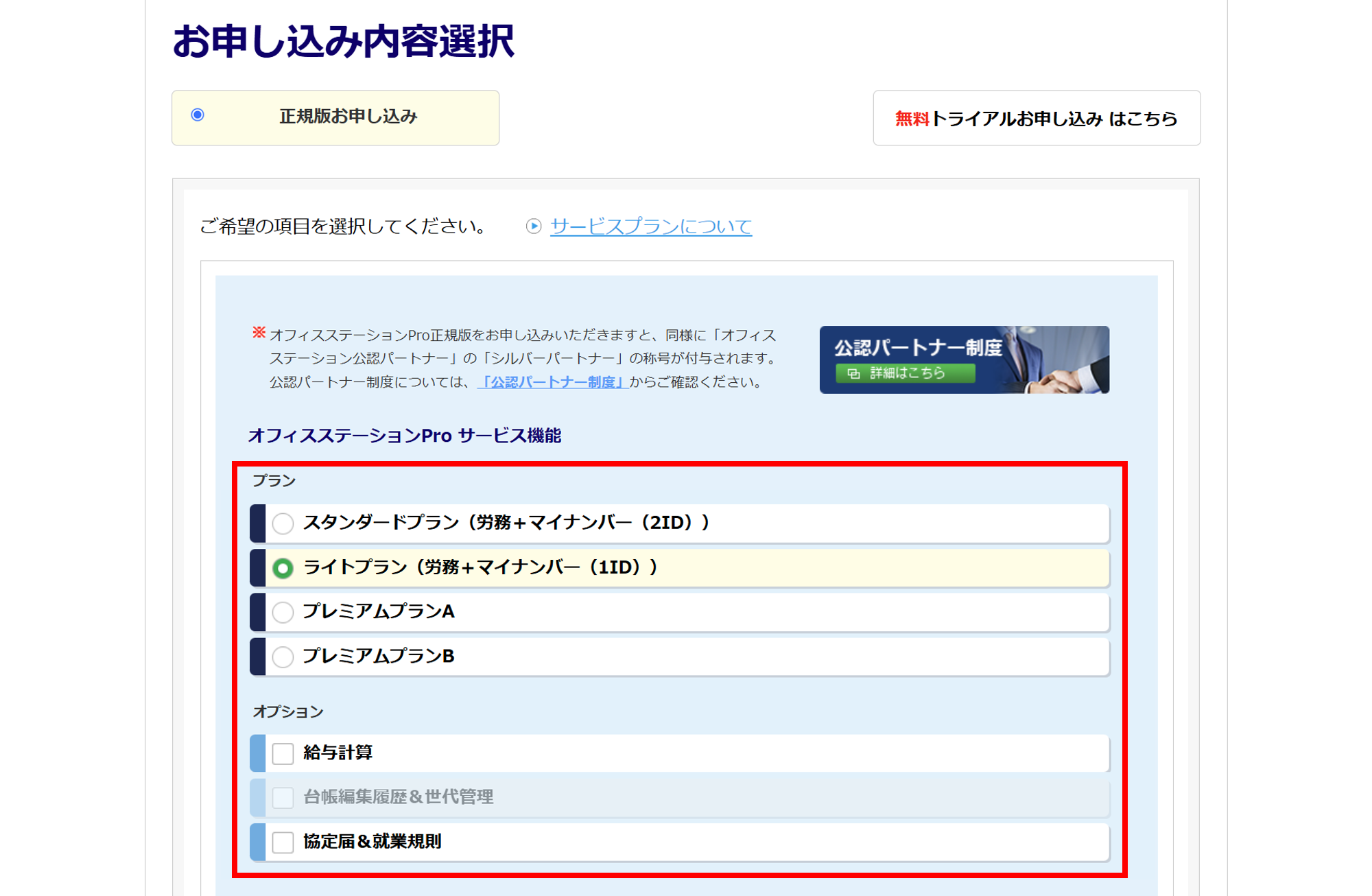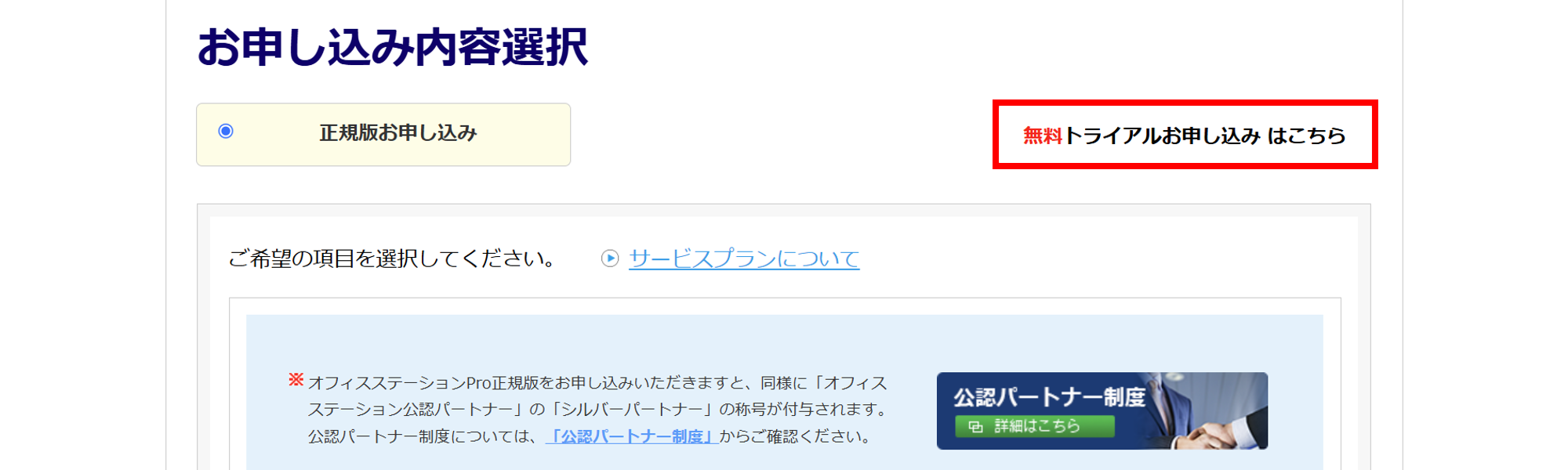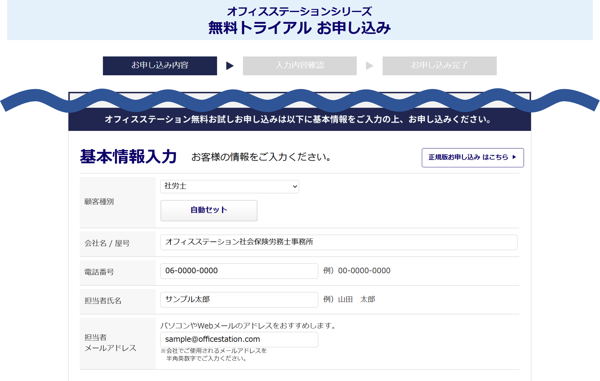 「オフィスステーションシリーズ 無料トライアル お申し込み」画面へ切り替わります。