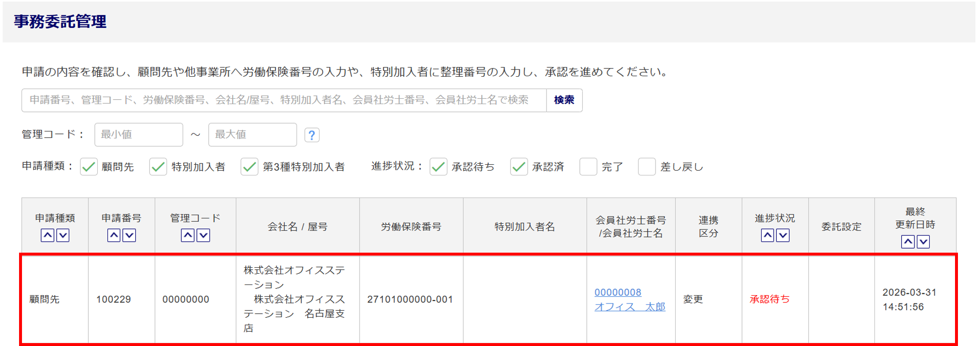 以上で会員社労士からの申請の承認操作は完了です。