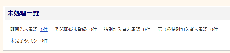会員社労士から事務局への申請がおこなわれると、事務局メインページの「未処理一覧」が更新されます。