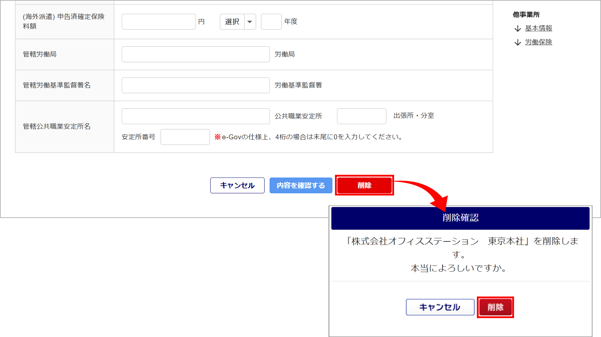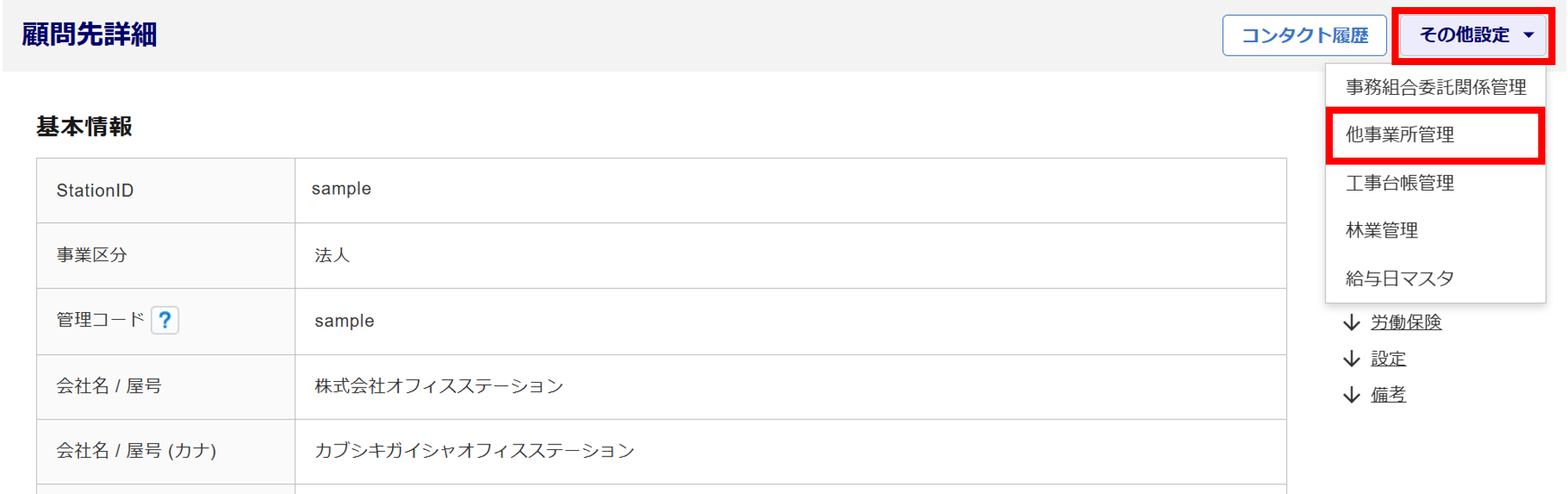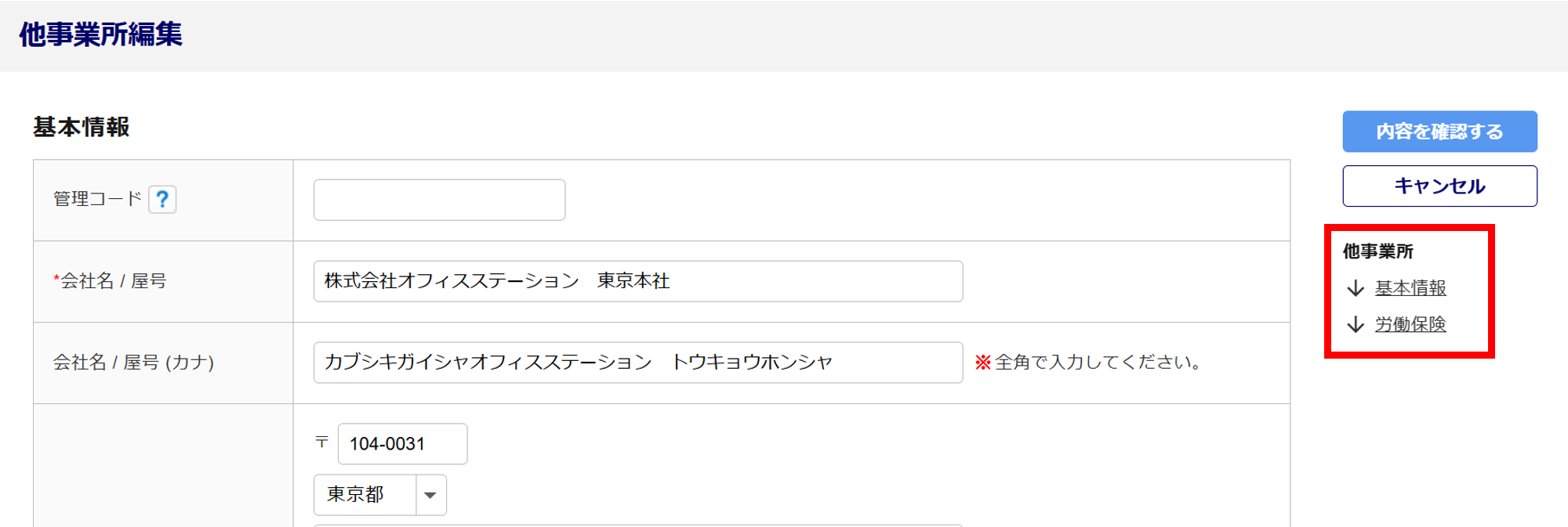 「他事業所管理」機能については、労働保険番号など事業所によって異なる場合にご利用ください。