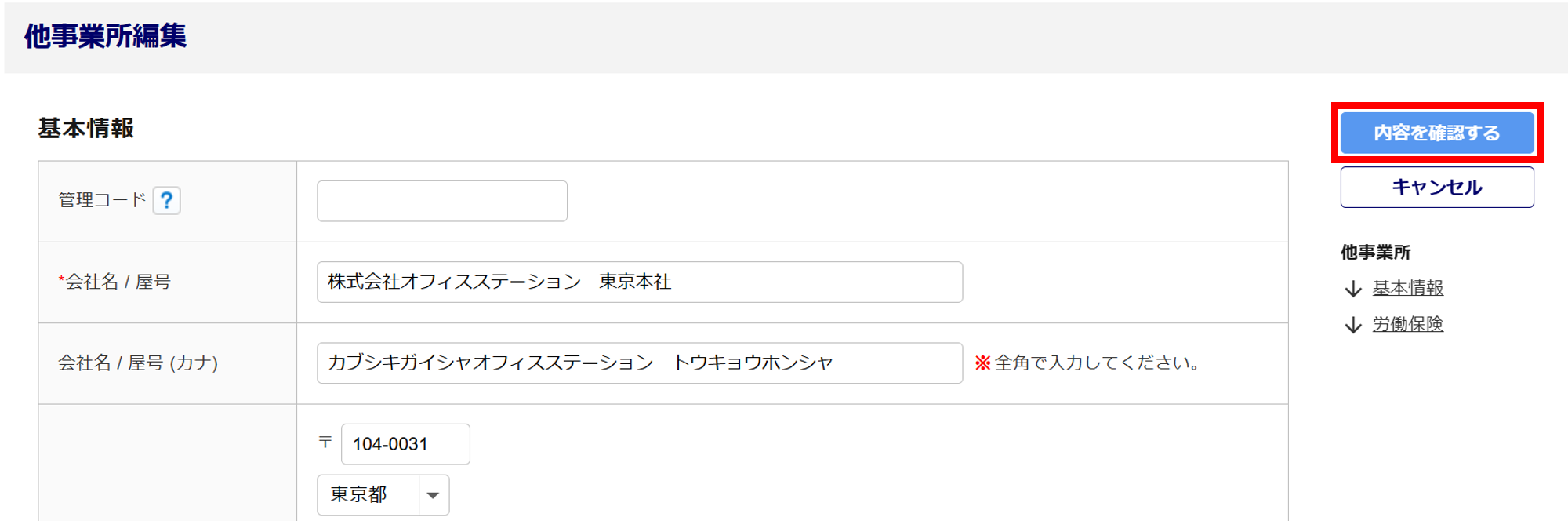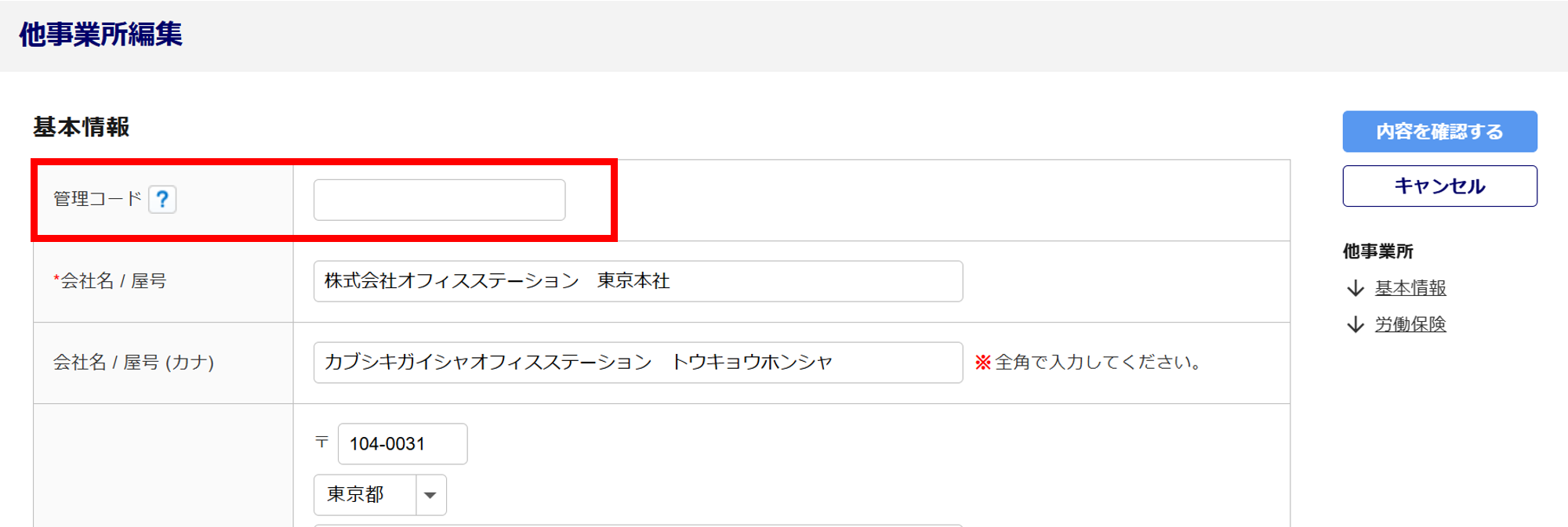 - 管理コード : 企業・他事業所を独自の番号で管理する為のコードです。(最大英数字10桁)