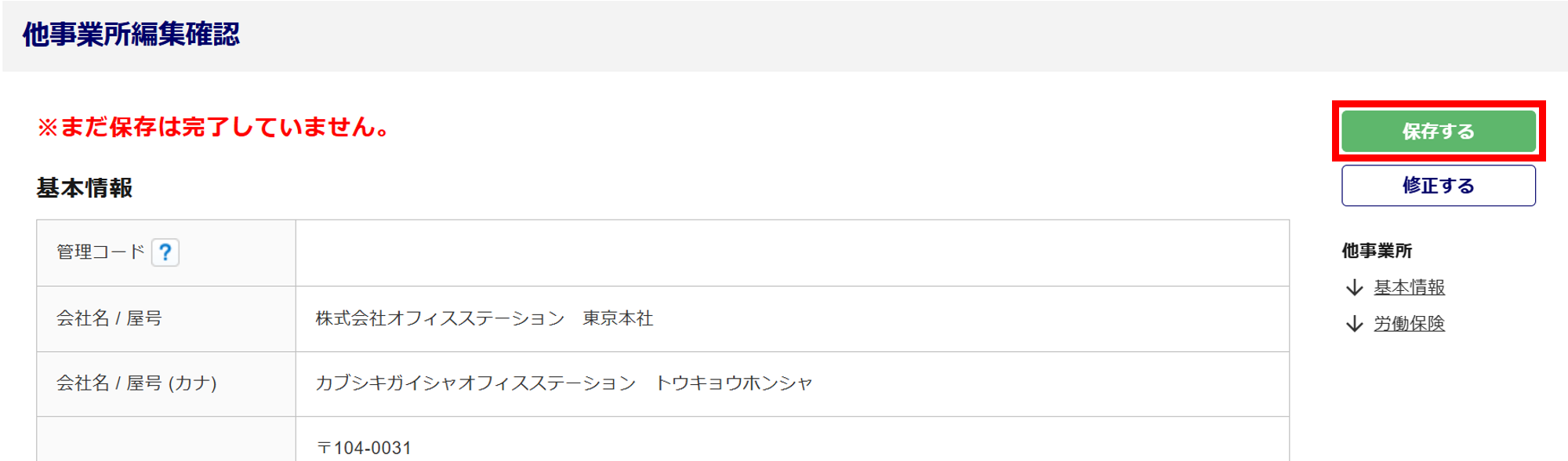 ※登録済みの他事業所の編集の場合、「変更しました。」と表示されます。