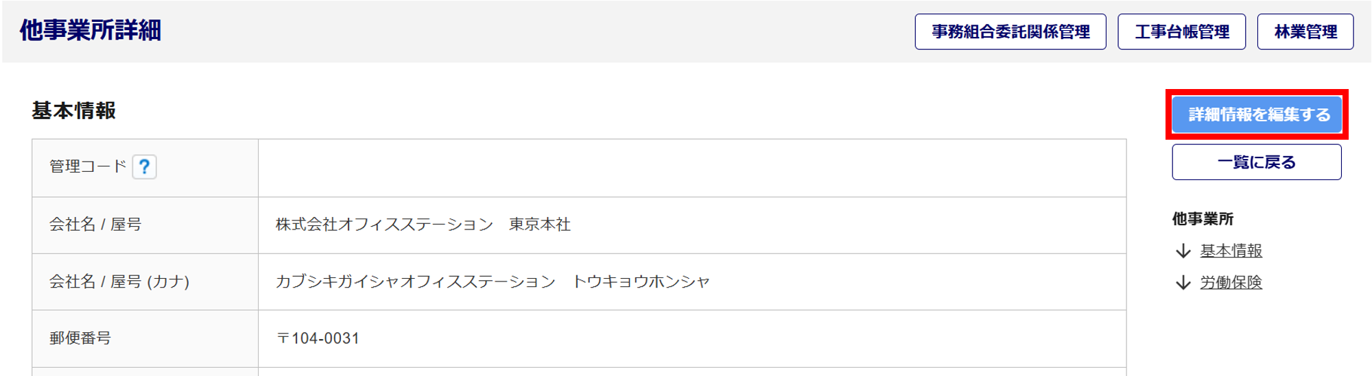 登録済みの他事業所を編集する場合は、[詳細情報を編集する]をクリックします。