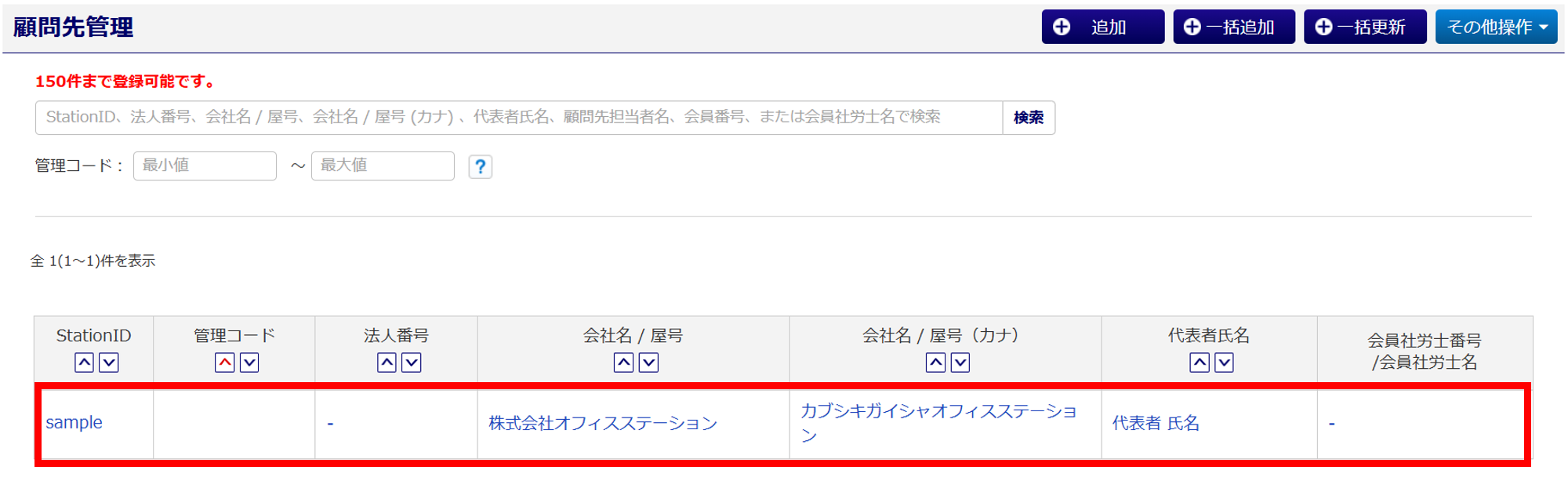 顧問先が一覧で表示されます。