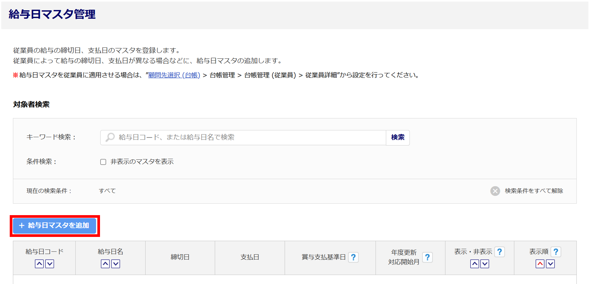 2076|【事務局】「給与日マスタ」登録方法