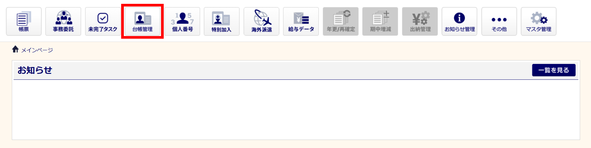 [台帳管理]をクリックします。