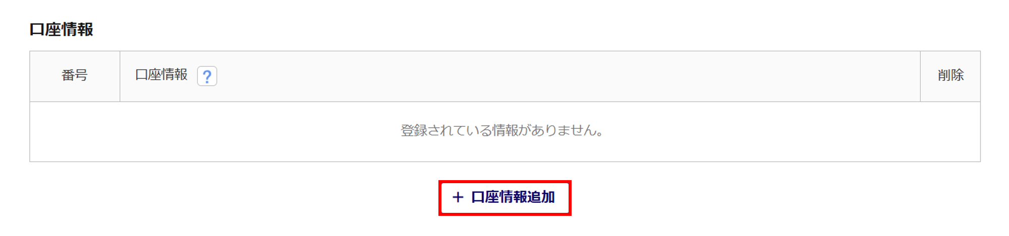 [口座情報追加]をクリックすると、口座情報の入力欄が表示されます。