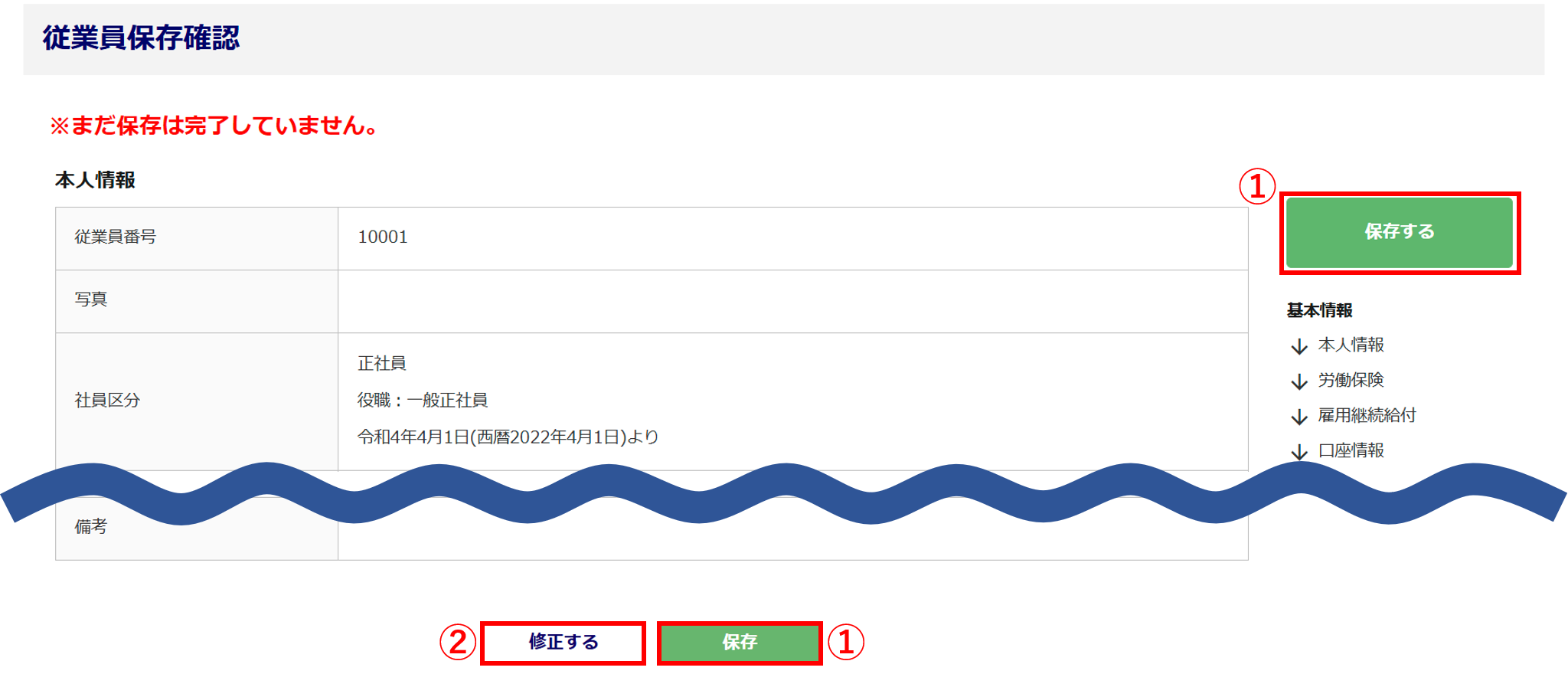 入力内容を確認し、[保存する]()をクリックします。