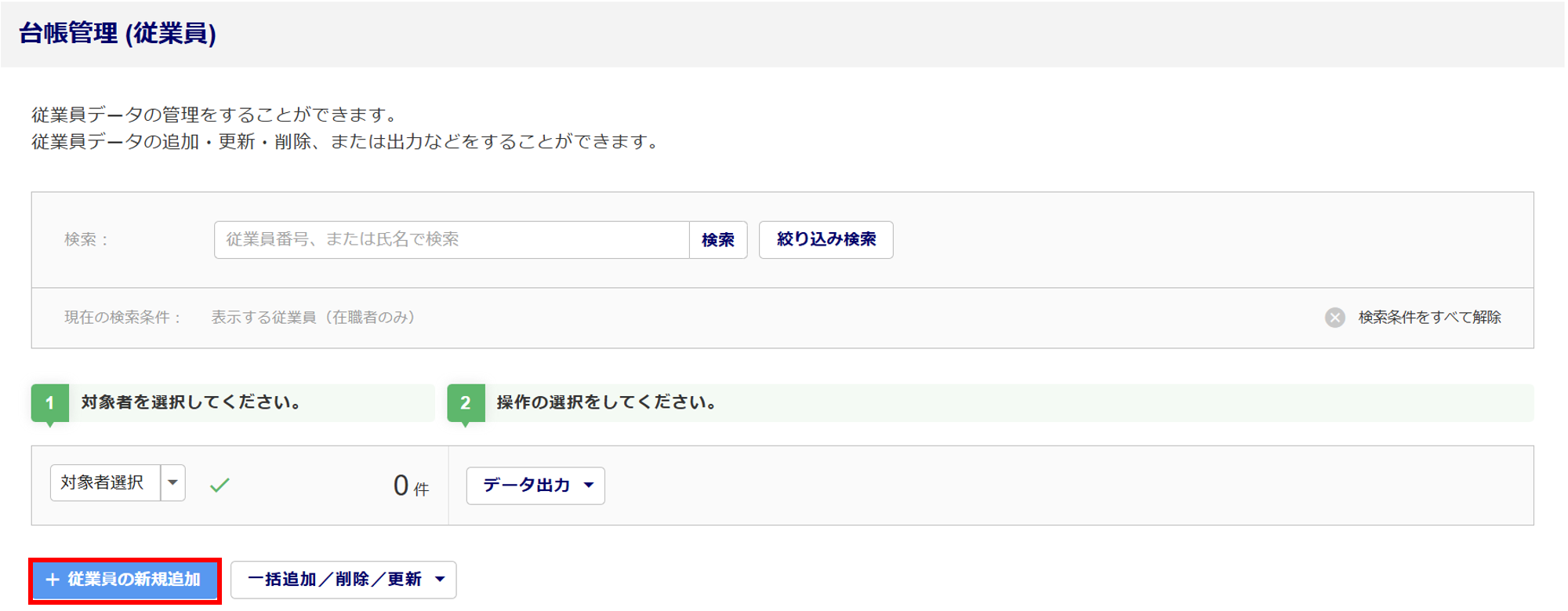 従業員台帳を新たに登録する方法について、ご説明します。