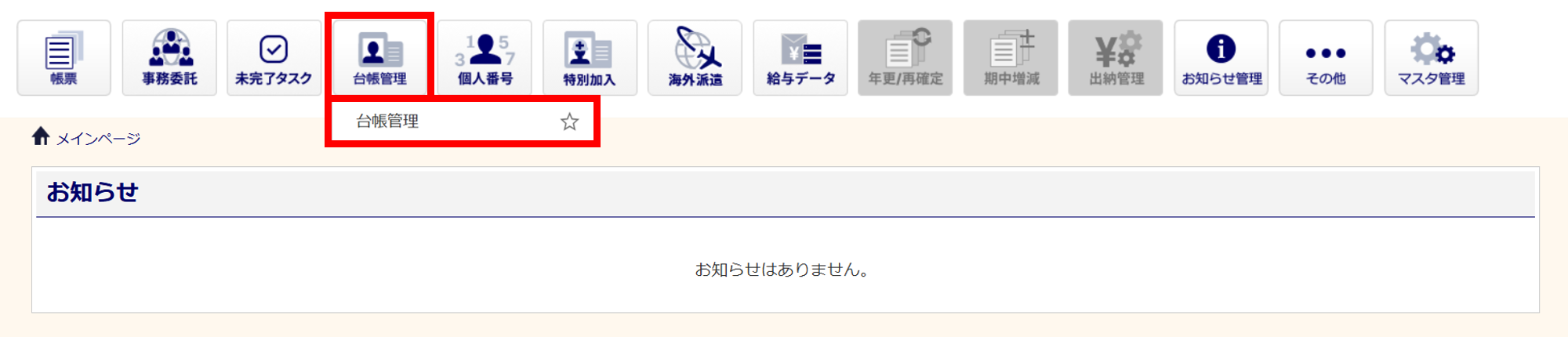 [台帳管理]>[台帳管理]をクリックします。