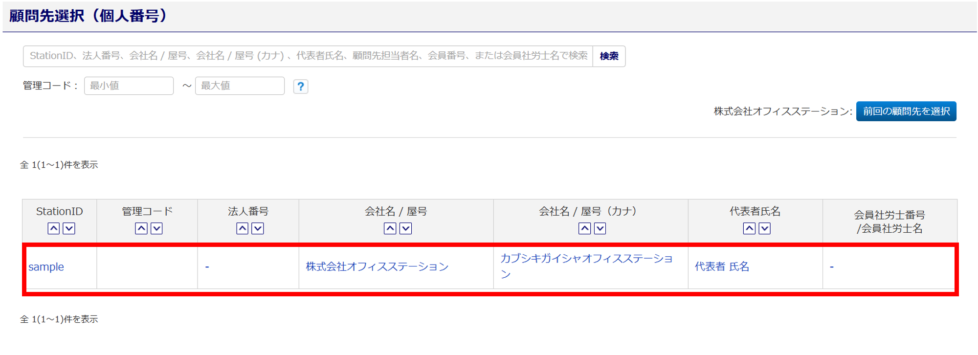 個人番号(マイナンバー)の削除予定日を登録する、顧問先をクリックします。