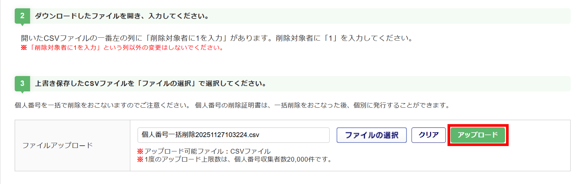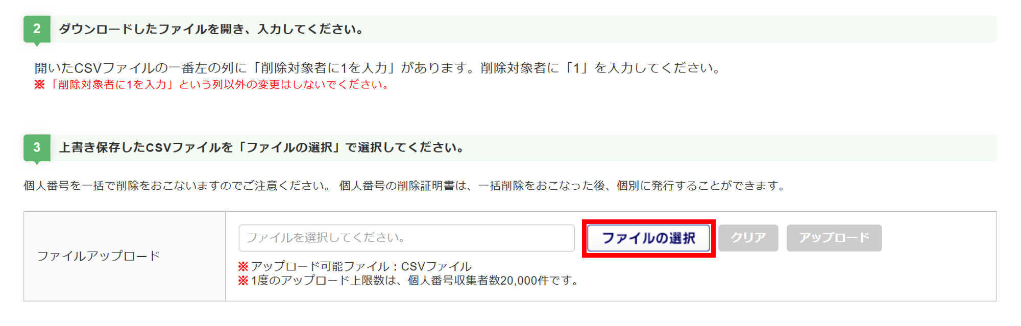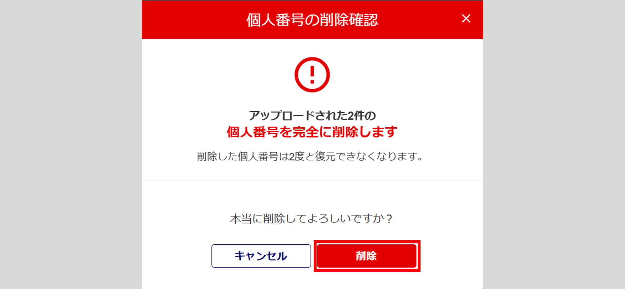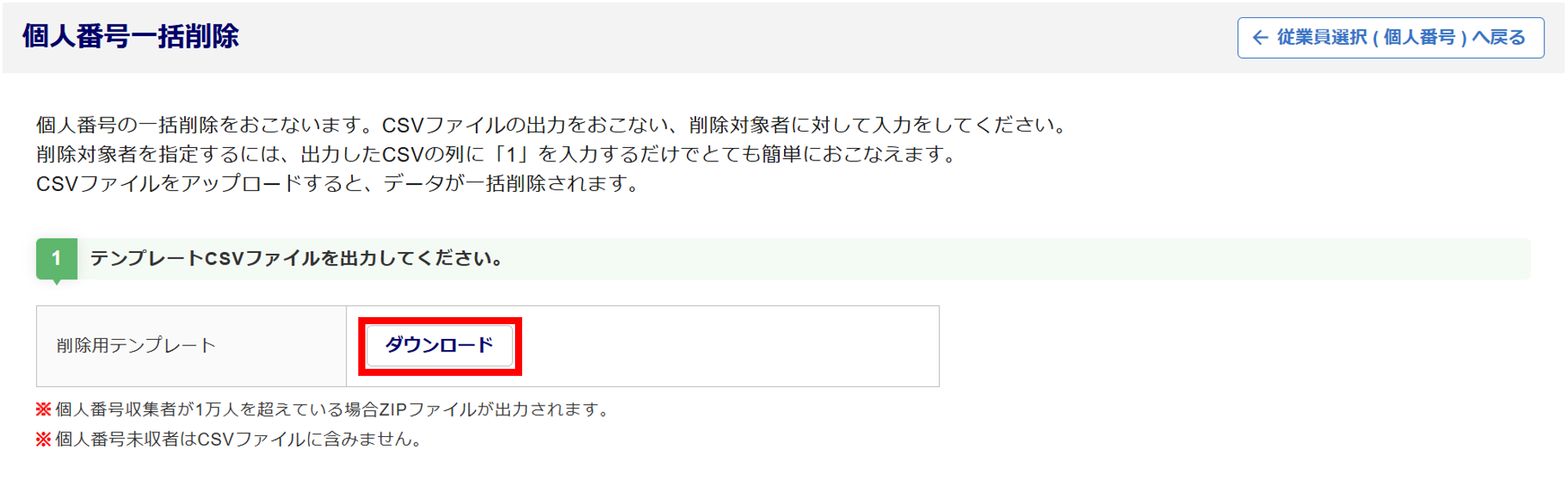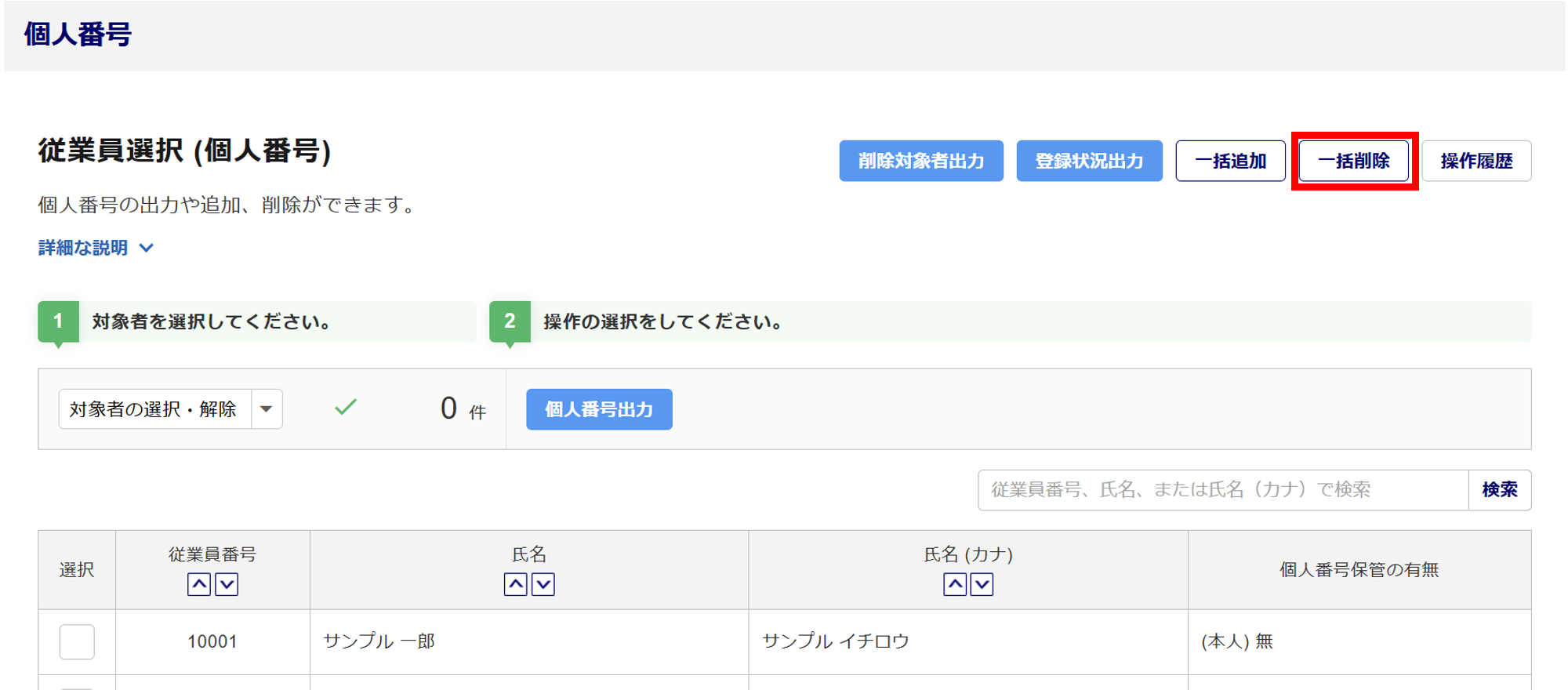 登録済みの個人番号(マイナンバー)を一括で削除する方法について、ご説明します。