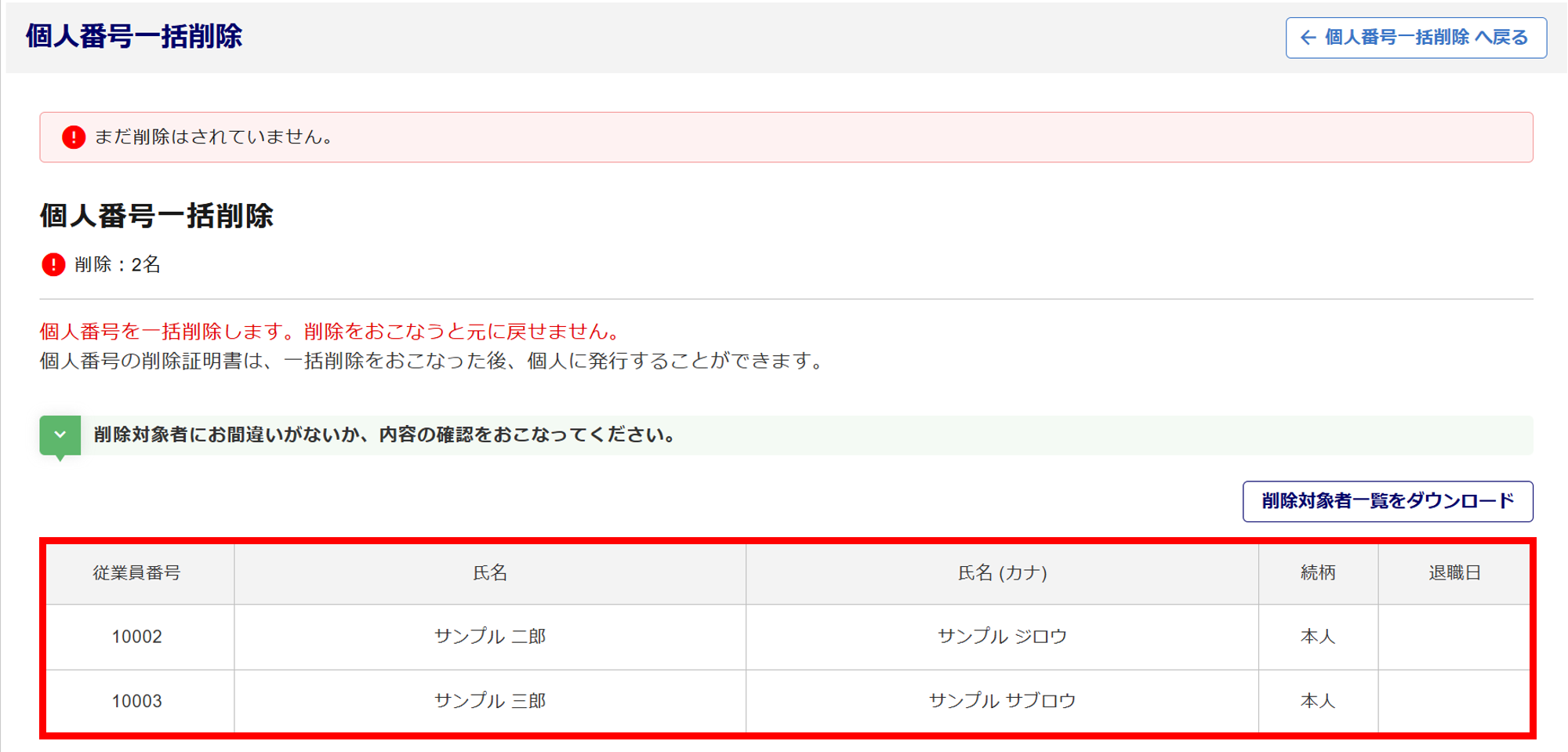 以上で、個人番号(マイナンバー)の一括削除操作は完了です。