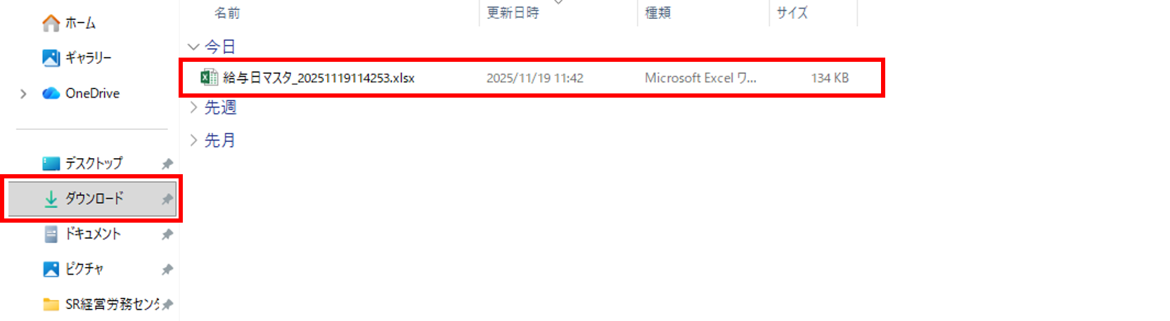ファイル名は、「給与日マスタ_yyyymmddhhmmss.xlsx」で出力します。