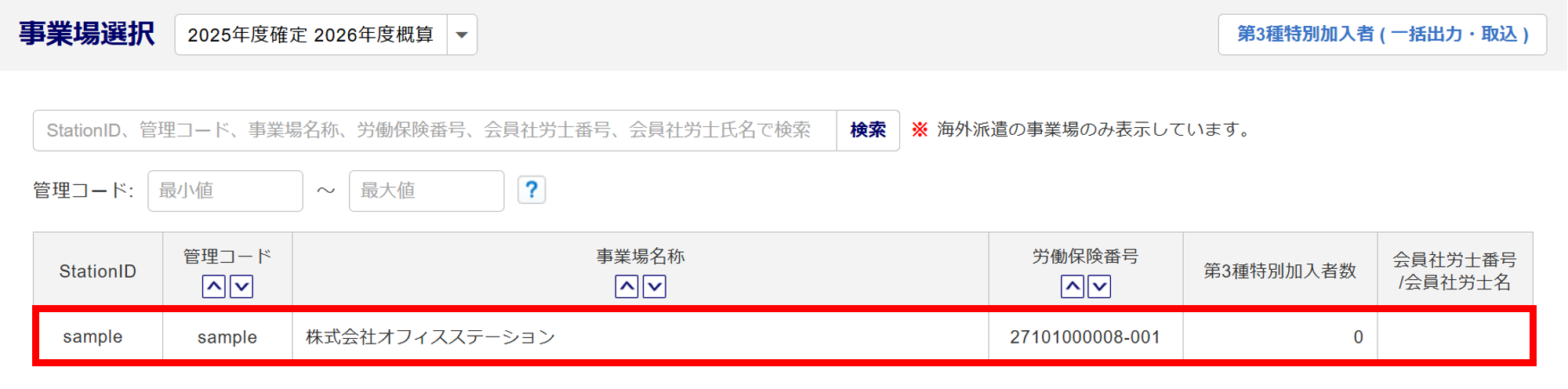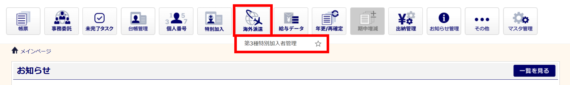 [海外派遣]>[第3種特別加入者管理]をクリックします。